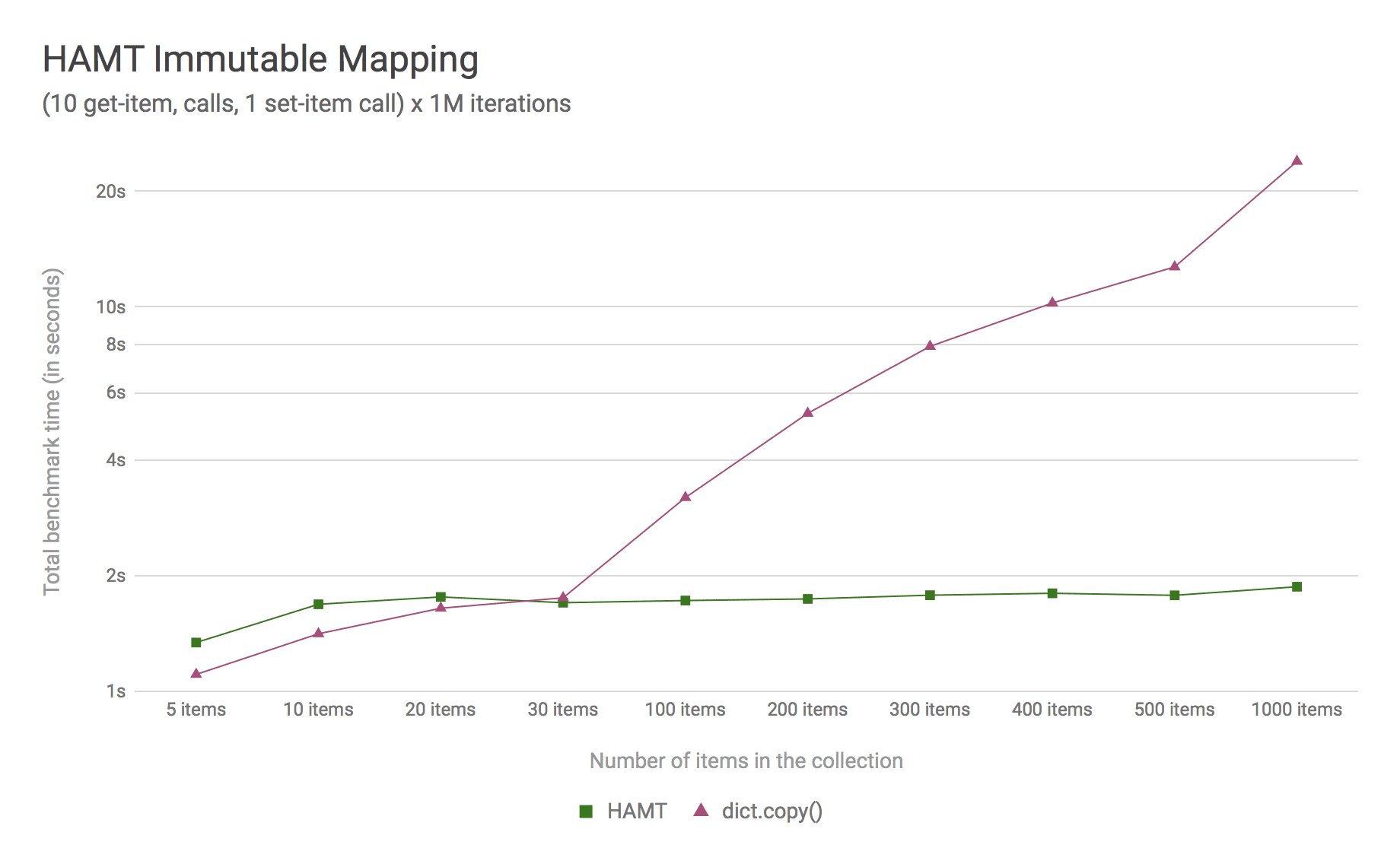 immutable mapping. HAMT lookup time is 30-40% slower than Python dict